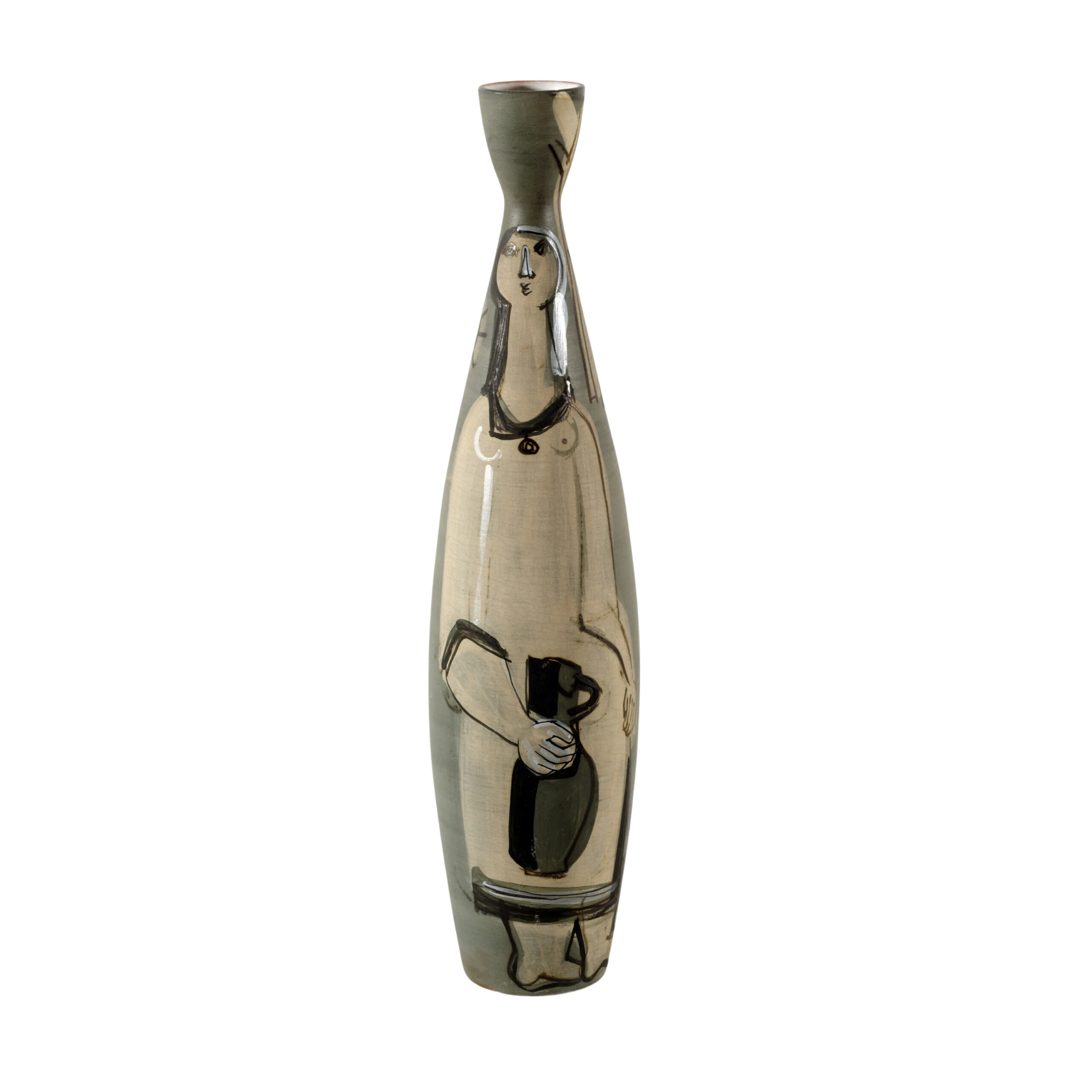 Deeply influenced by Picasso, Innocenti worked with the region’s distinctive red clay, creating pieces that explored themes of portraits, bathers, and still lifes. His practice combined traditional craftsmanship with innovative techniques such as double firing and engobe painting, resulting in ceramics that were both expressive and modern.